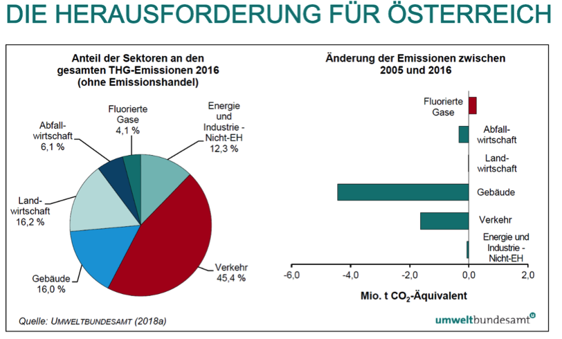 Um diese gemeinsamen Ziele zu erreichen, muss Österreich bis 2050 seine Emissionen auf 0 senken. Bis 2050 hat unser Land ein „Budget“ von 1.000 bis 1.500 Mio t CO2-Äqu. Sollte Österreich die bisherigen Emissionswerte beibehalten, wäre dieses „Budget“ deutlich früher aufgebraucht, aus derzeitiger Sicht um 2035.