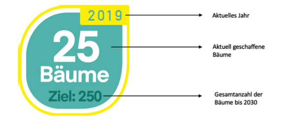 Weil die Reduktion von „CO2-Äquivalent in kg/t“ so abstrakt ist, dass sich die wenigsten etwas darunter vorstellen können, haben wir uns entschlossen, die CO2-Reduktionen in Bäume umzurechnen.